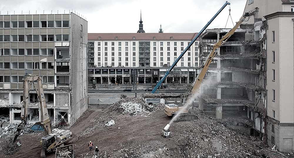 Veľké množstvo prachu sa nedá vyhnúť žiadnemu druhu demolácie. Keď sa demolačné miesto nachádza v meste, potom sa prach stáva problémom. Mobilné regulátory prachu dodávané firmou EmiControls sú obzvlášť dobré pri riešení problému prachu generovaného počas demolačných prác. Môžu byť ľahko a rýchlo presunuté do rôznych pozícií. Keď sa zdroj prachu pohybuje, prachový regulátor sa jednoducho pohybuje spolu s ním. Používa sa veľmi málo vody; preto je zriedkavé, že tvoria kaluže.